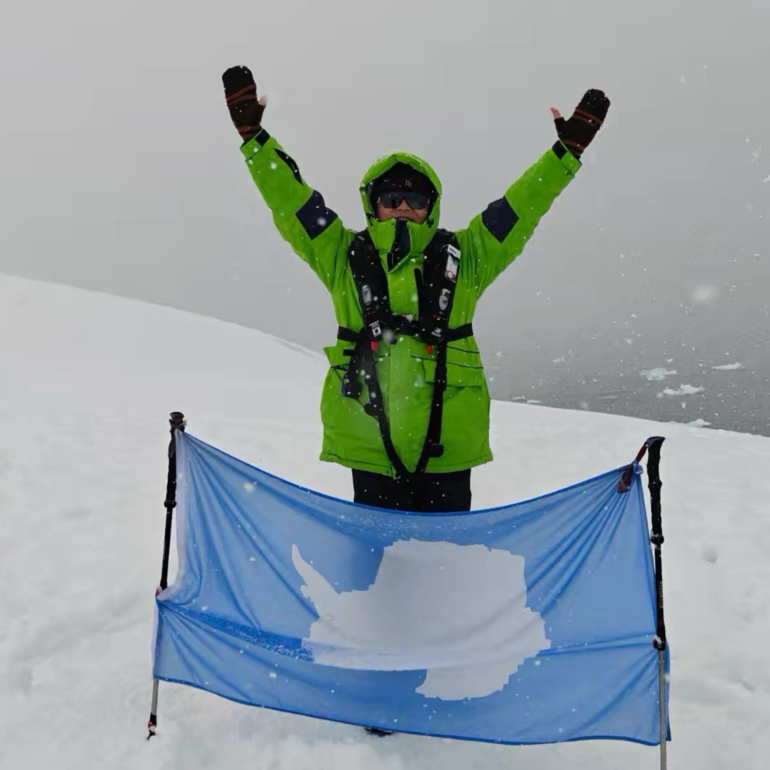 在因纽特人家里,我与他们祖孙仨人合影,小孙子用北极熊🐻做的裤子、北极狐🦊的帽子,他是世界上最靓的仔了。极地邂逅:伊镇因纽特
