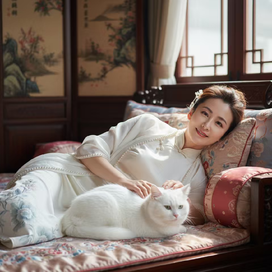 这是一件浅蓝色的旗袍,色调清雅柔和。它采用传统立领设计,领口处有精致盘扣点缀。衣袖为短袖款式,贴合手臂线条,利落又大方。