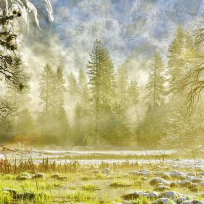 冬天的喀纳斯完全变成了白色的童话世界,洁白晶莹的雪,泛着淡淡兰色的冰,碧绿的湍急的还未完全结冰的河水,在蓝天的印衬下,像